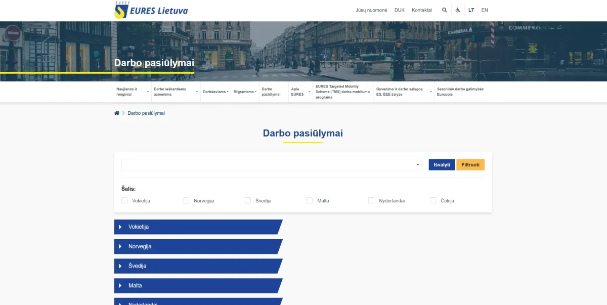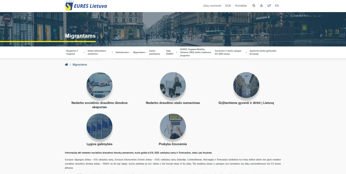 Projekto tinklalapis: https://eures.uzt.lt/