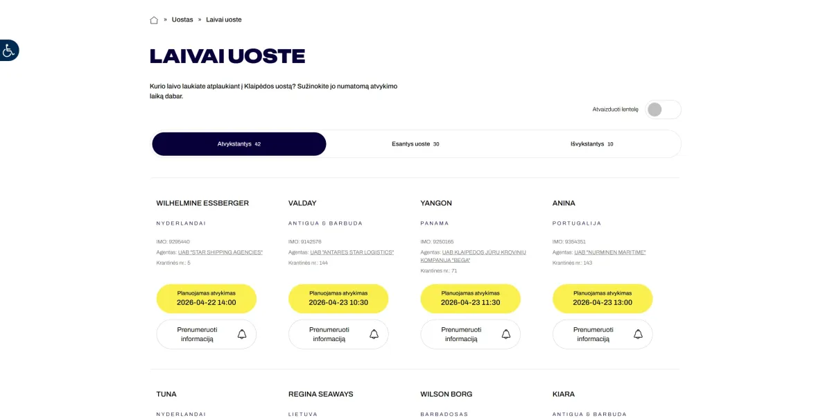 Svetainės nuoroda: https://portofklaipeda.lt/