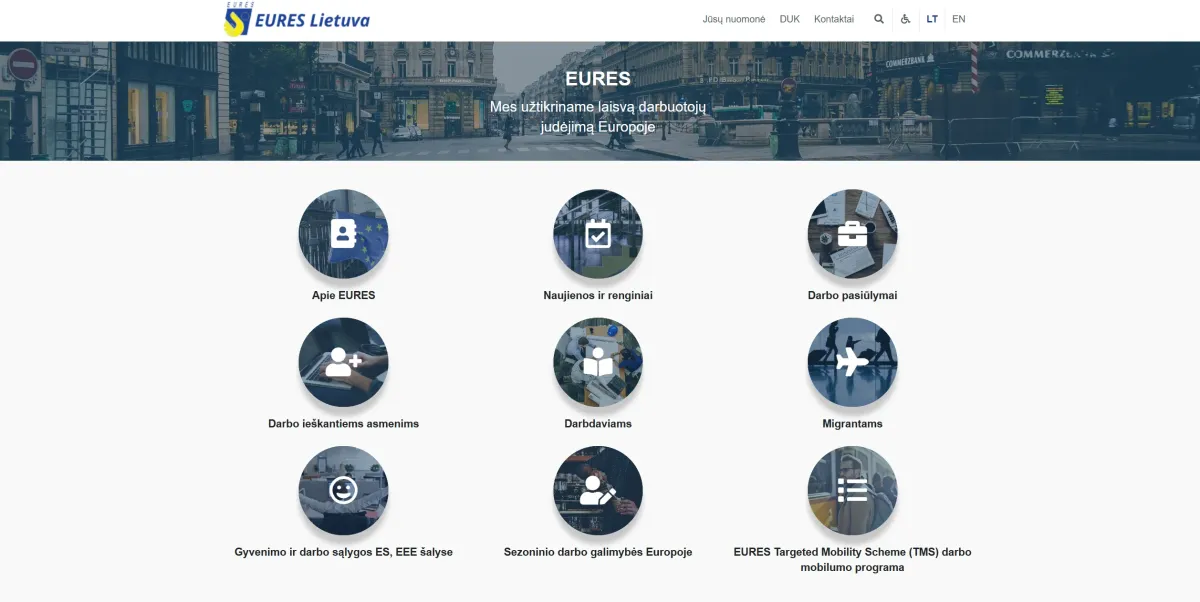 Projekto tinklalapis: https://eures.uzt.lt/